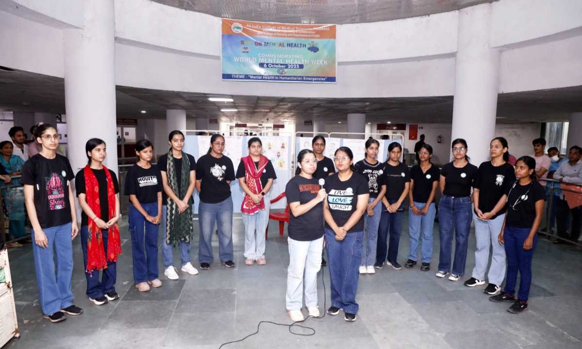 विश्व मानसिक स्वास्थ्य दिवस (10 अक्टूबर 2025) के उपलक्ष्य में एम्स ऋषिकेश के मनोचिकित्सा विभाग द्वारा कॉलेज ऑफ नर्सिंग एवं आयुष विभाग के सहयोग से 11 अक्टूबर तक विश्व मानसिक स्वास्थ्य सप्ताह का आयोजन किया जा रहा है। संस्थान की कार्यकारी निदेशक प्रो. मीनू सिंह के मार्गदर्शन में आयोजित कार्यक्रम के पहले दिन संस्थान के कॉलेज ऑफ नर्सिंग की छात्राओं द्वारा विश्व स्वास्थ्य संगठन की थीम पर आधारित एक लघु नाट्य प्रस्तुत किया गया।